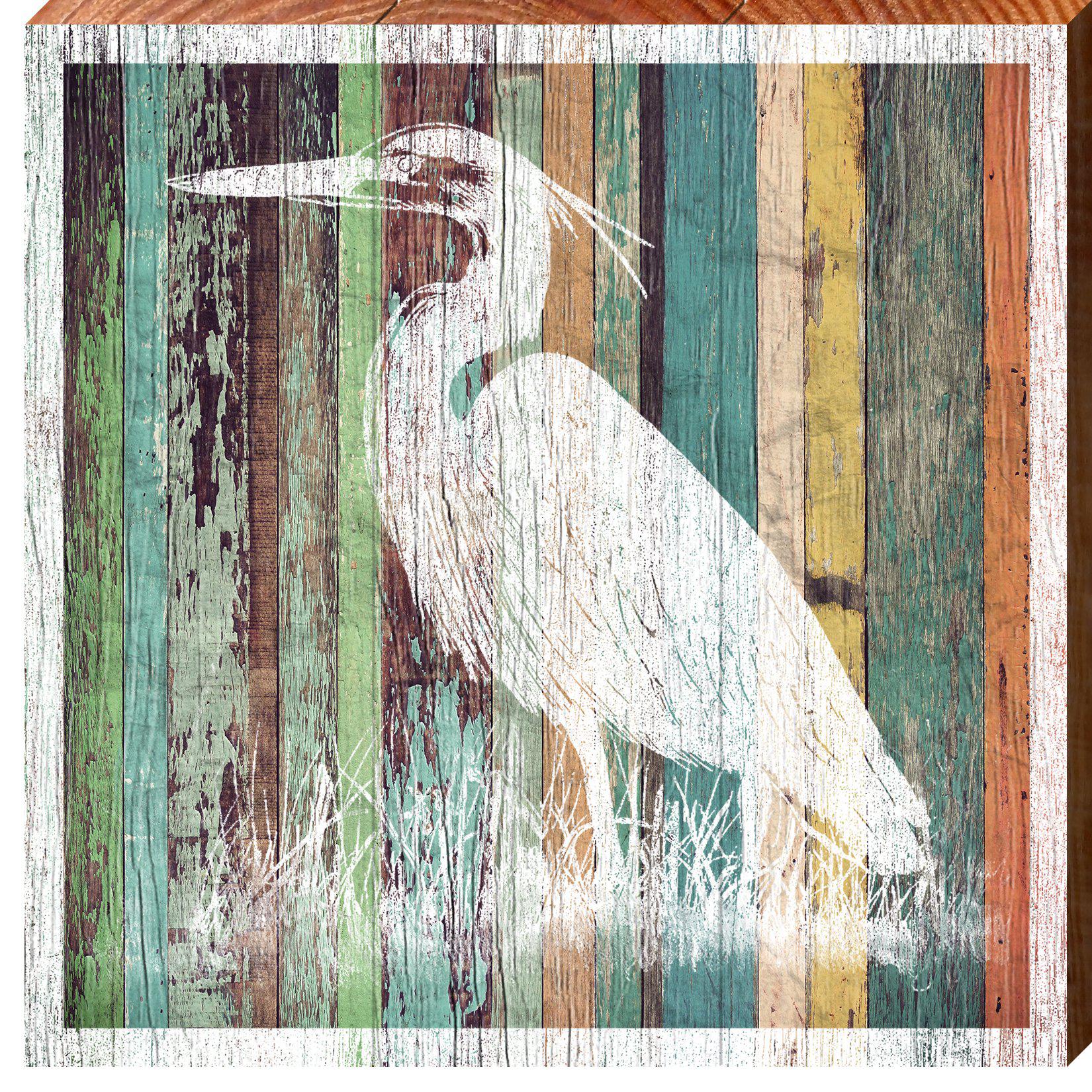Heron Colorful Coastal Wooden Sign