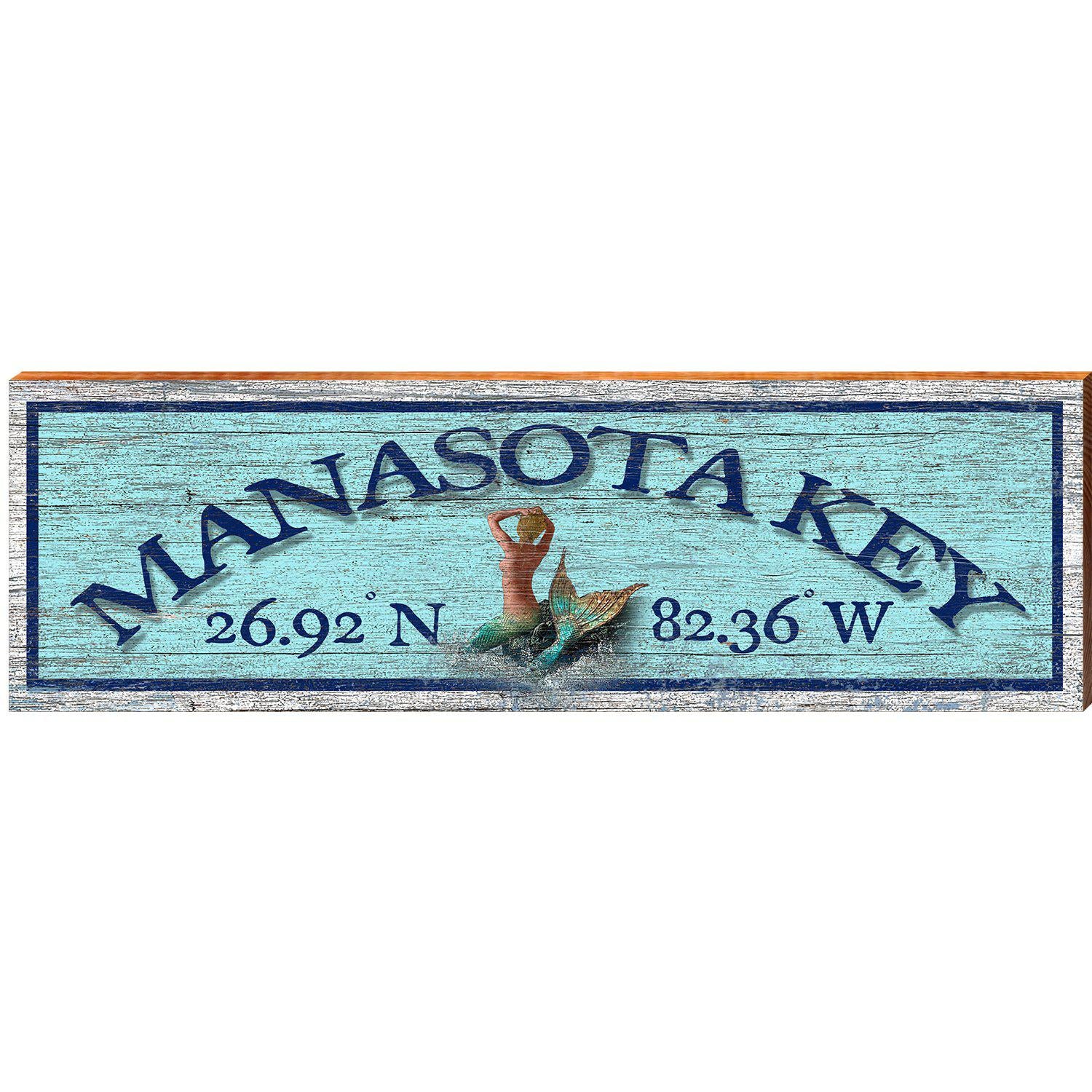 Manasota Key Mermaid Blue Latitude Longitude | Wall Art Print on Real Wood