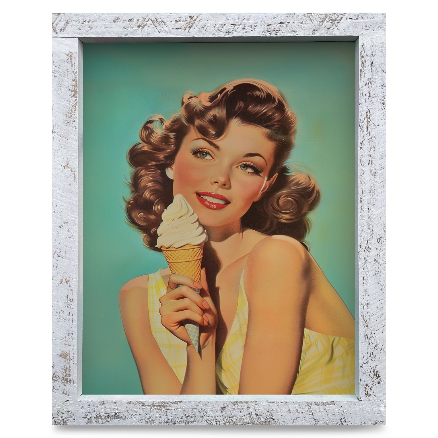 Vintage Ice Cream Girl | Real Wood Framed Wall Art Print