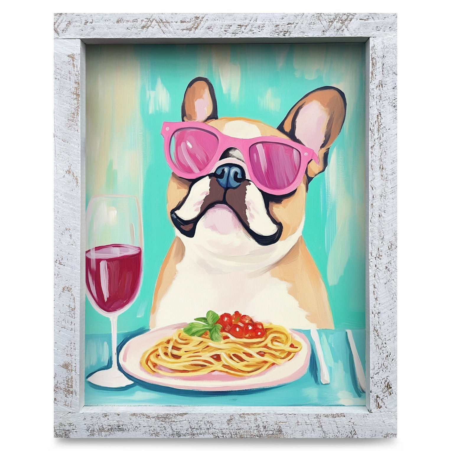 Date Night French Bulldog | Real Wood Framed Wall Art Print