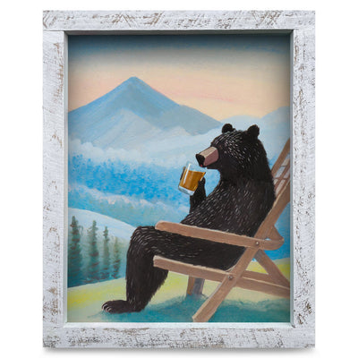 Bear Beer Chair Mountains | Real Wood Framed Wall Art Print
