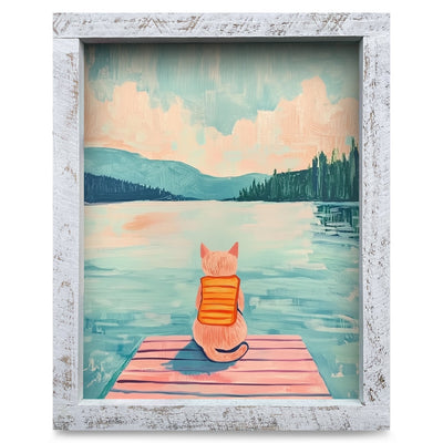 Cat Lake Daydreams | Real Wood Framed Wall Art Print