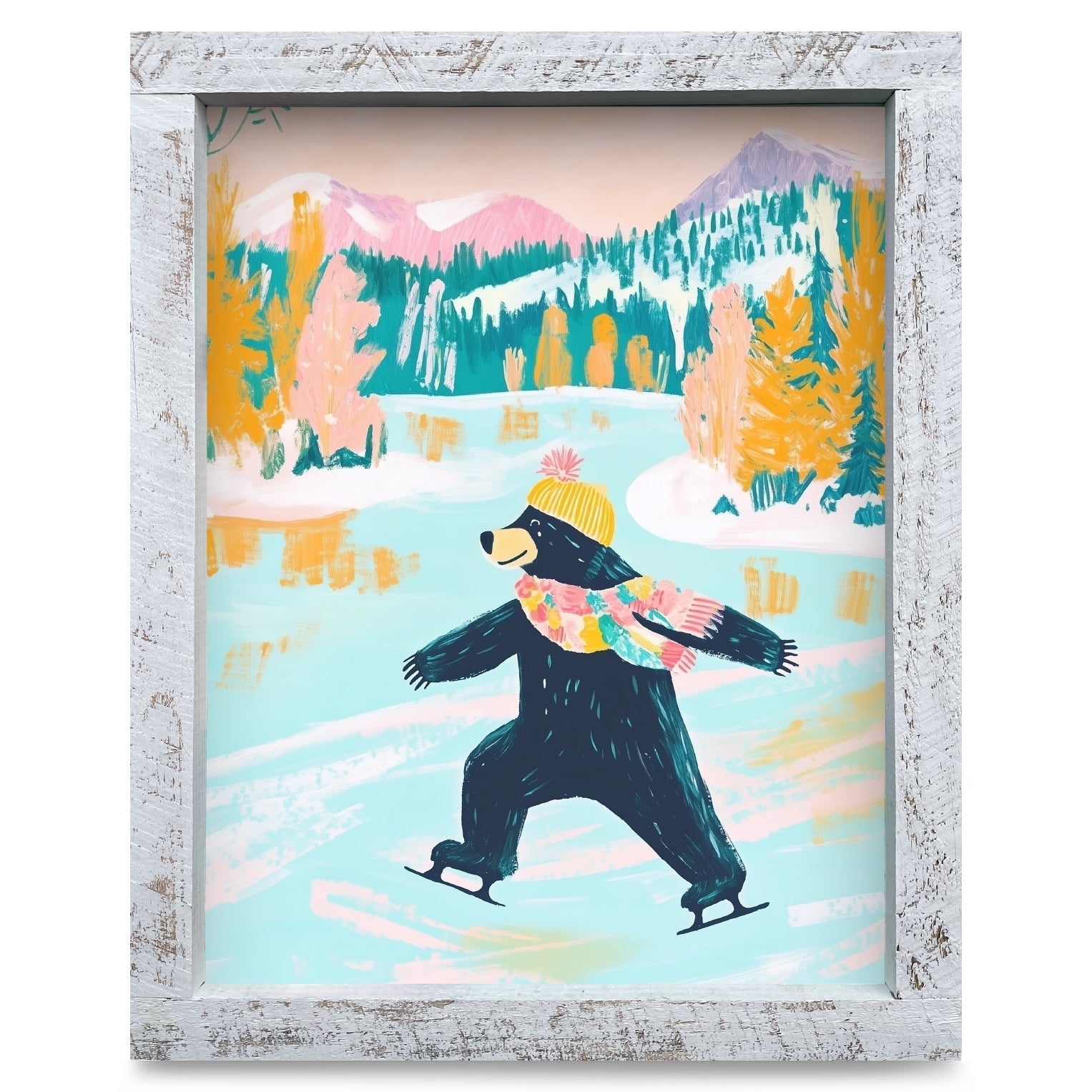Black Bear Ice Skater | Real Wood Framed Wall Art Print