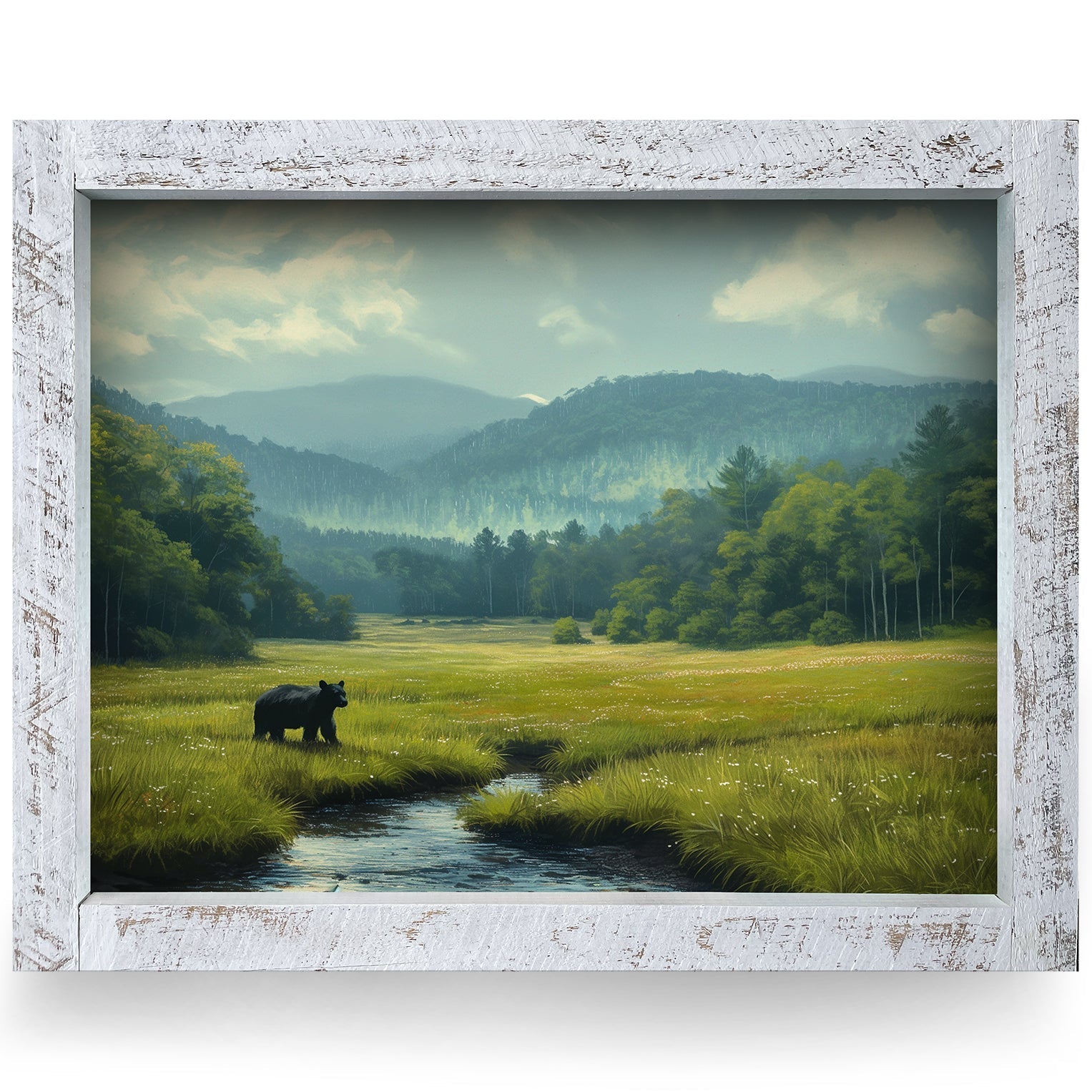 Black Bear Mountain Fishing | Real Wood Framed Wall Art Print