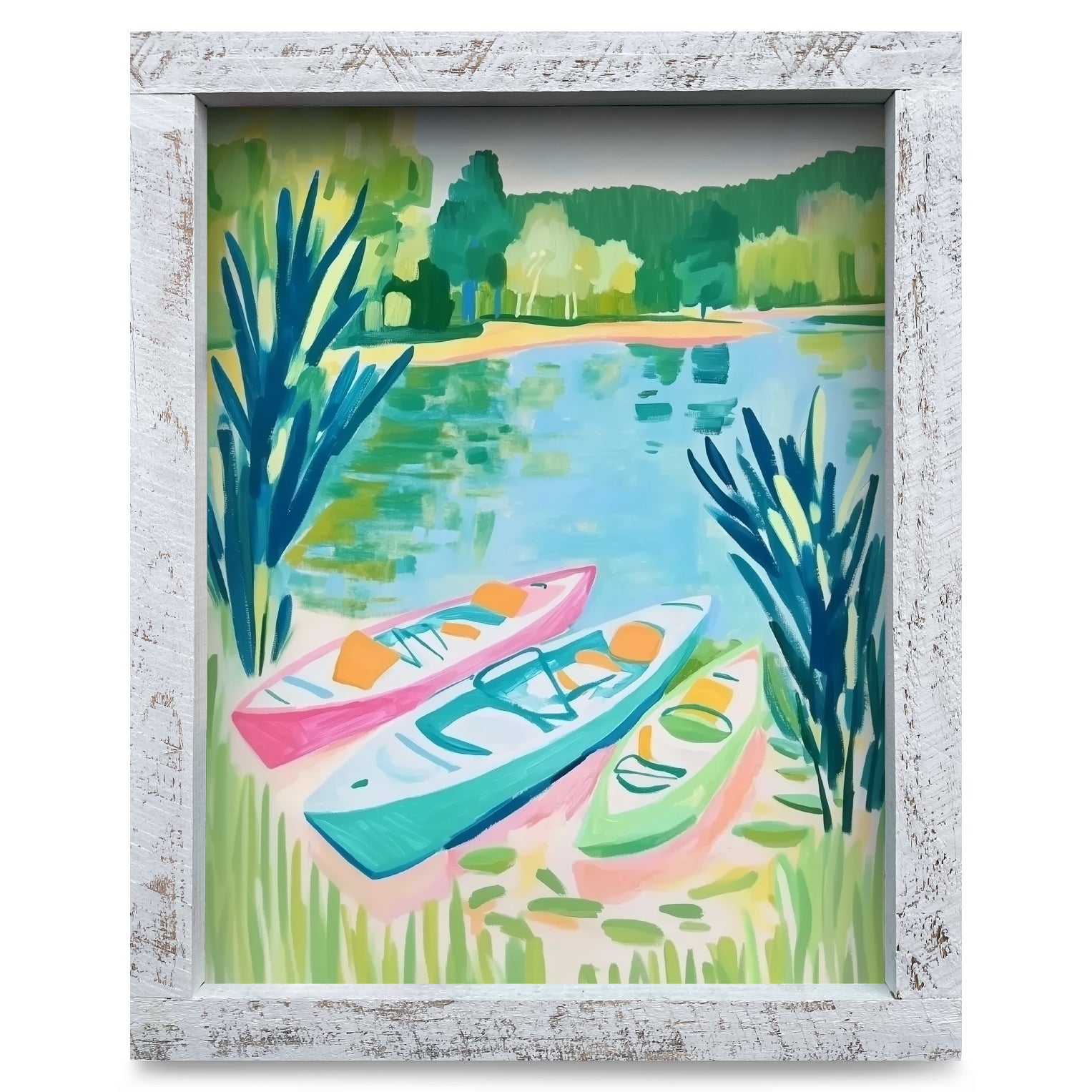 Colorful Kayaks | Real Wood Framed Wall Art Print