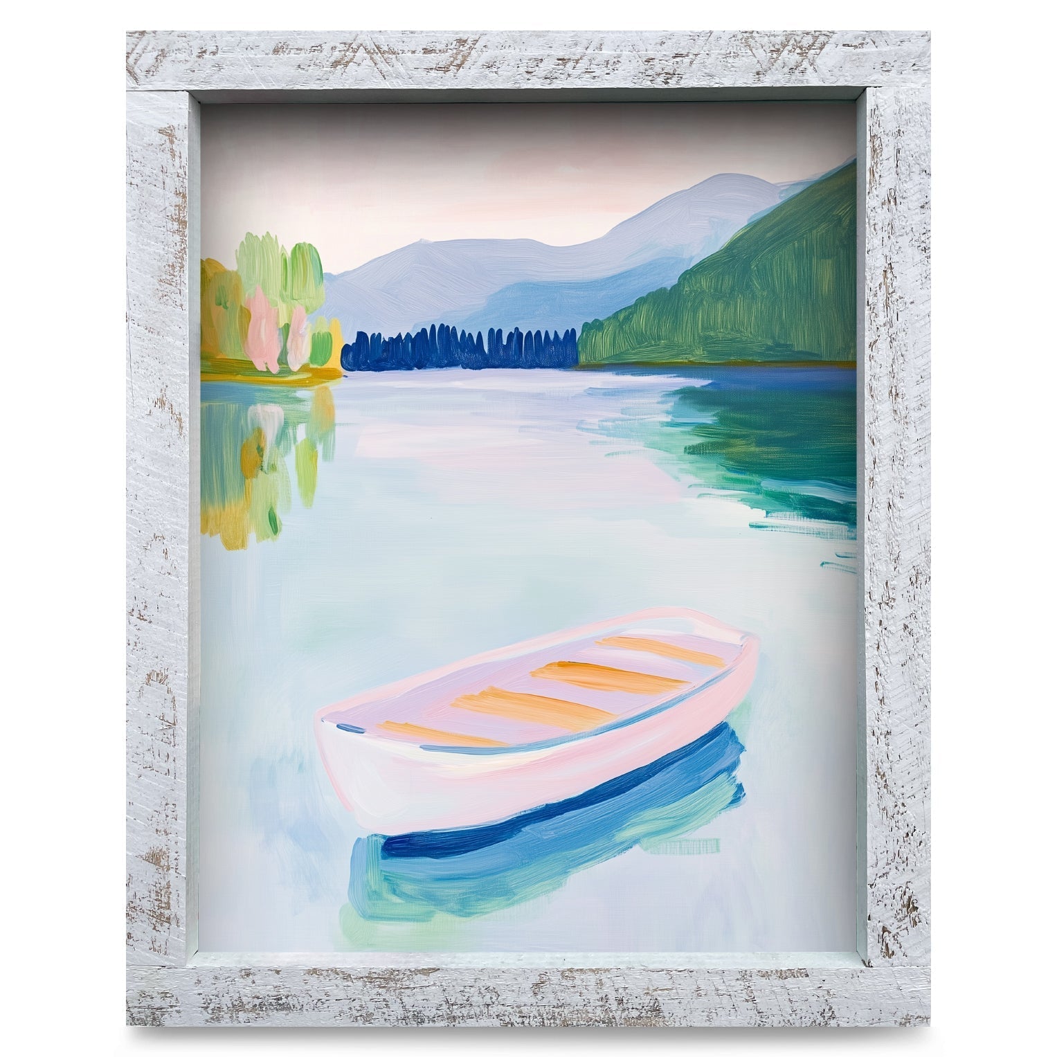 Pastel Lake Boat | Real Wood Framed Wall Art Print