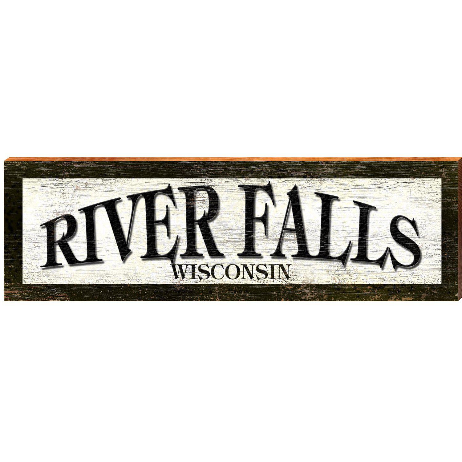 River Falls Wisconsin Sign | Wall Art Print on Real Wood