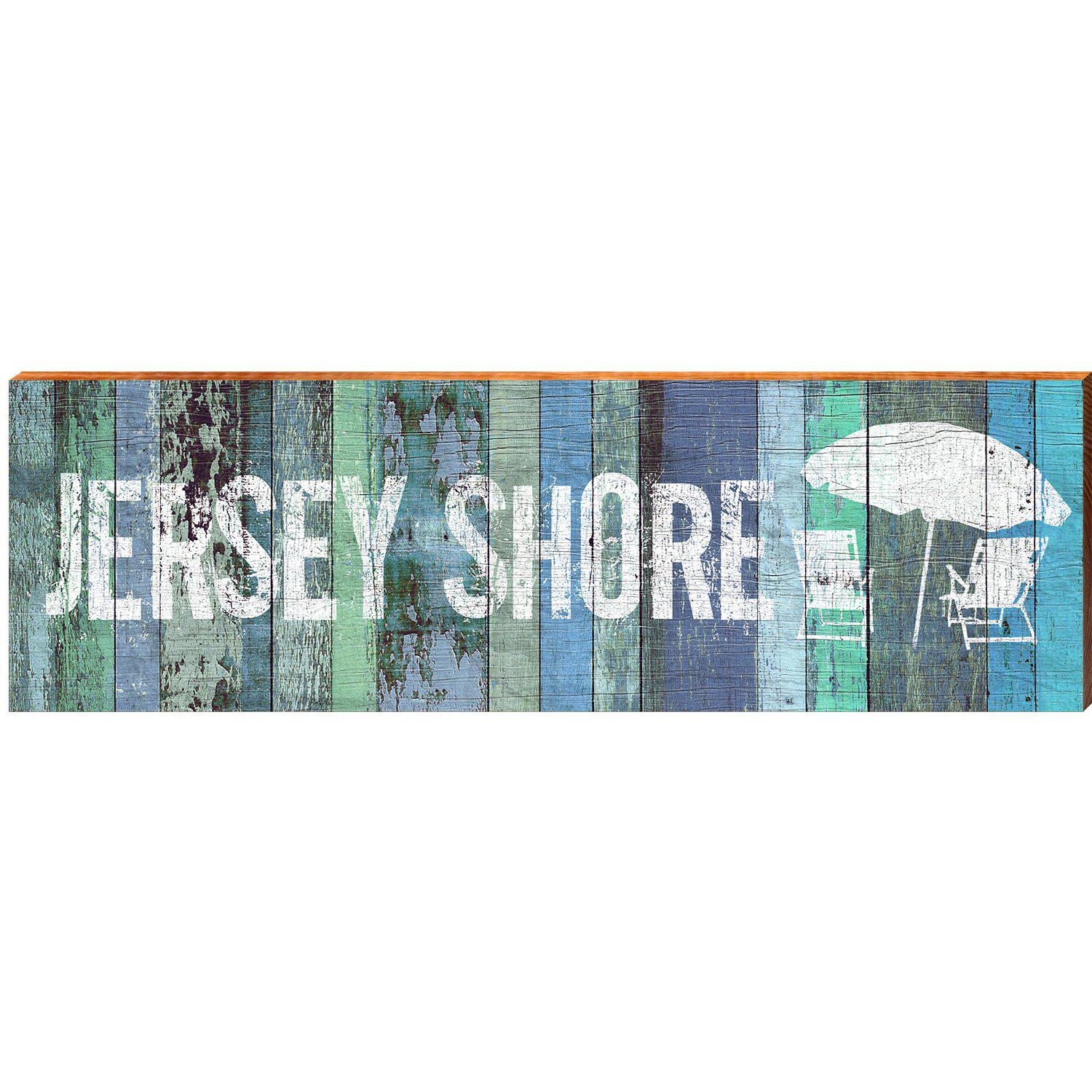 Jersey Shore Beach Umbrella & Chairs Blue Boards | Wall Art Print on Real Wood