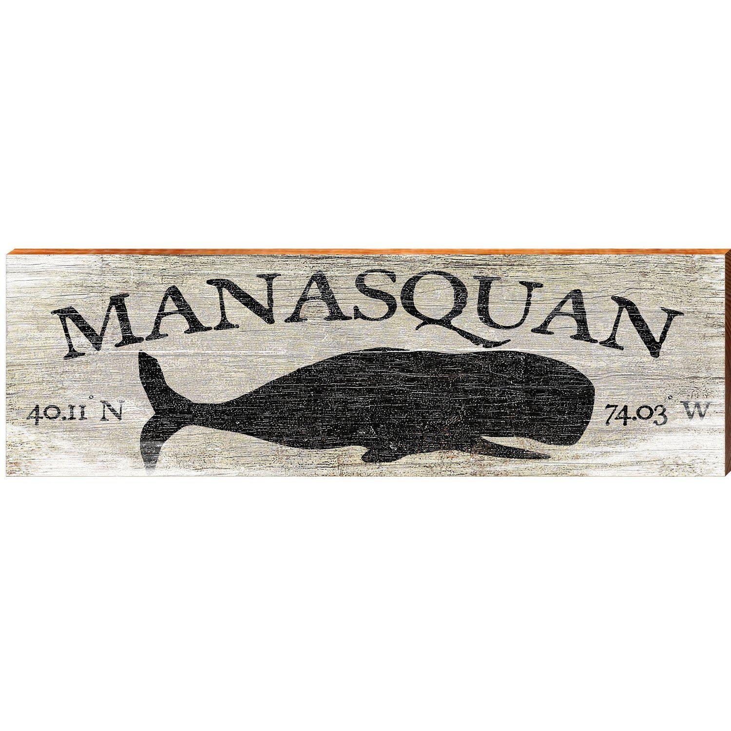 Manasquan Whale Grey Latitude Longitude | Wall Art Print on Real Wood