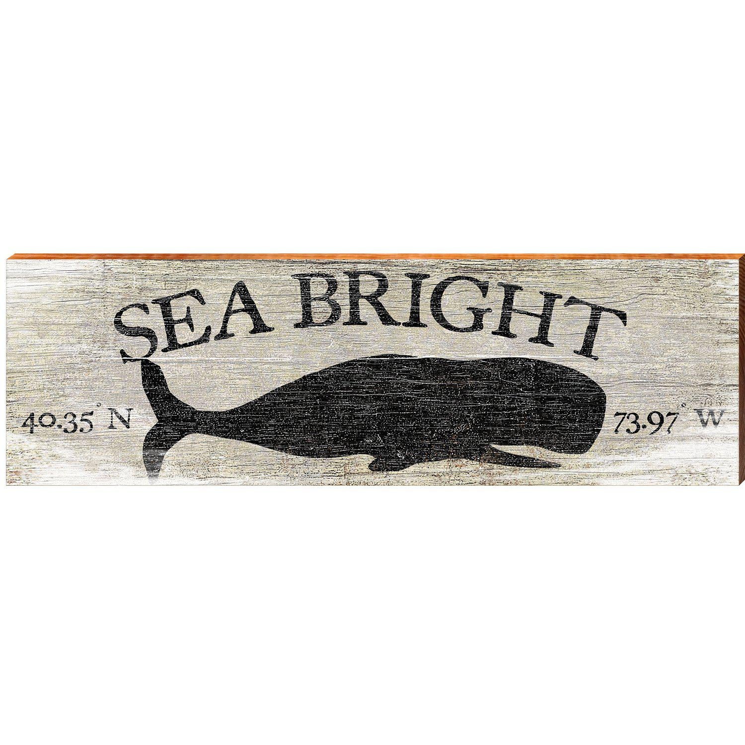 Sea Bright Whale Grey Latitude Longitude | Wall Art Print on Real Wood