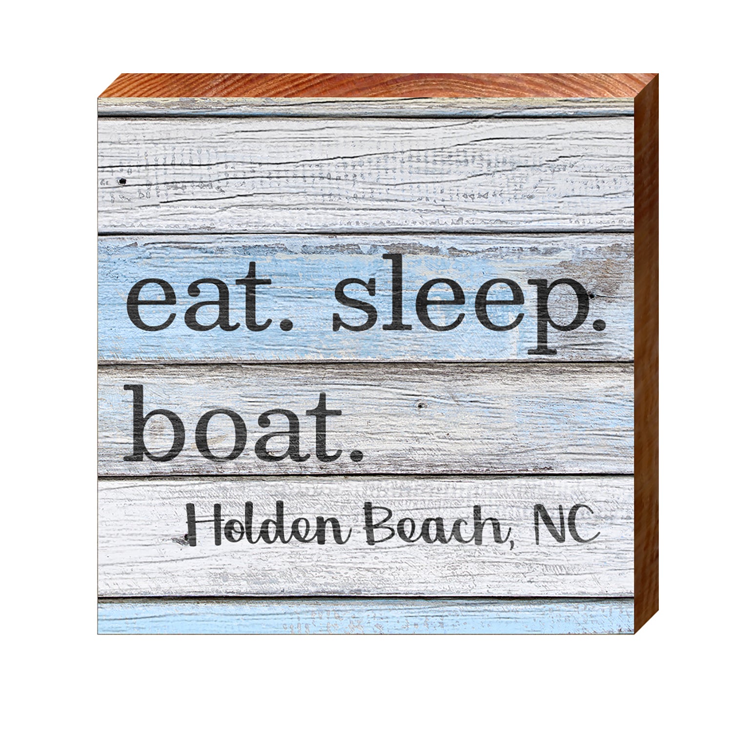 Eat Sleep Boat Holden Beach | Real Wood Art Print