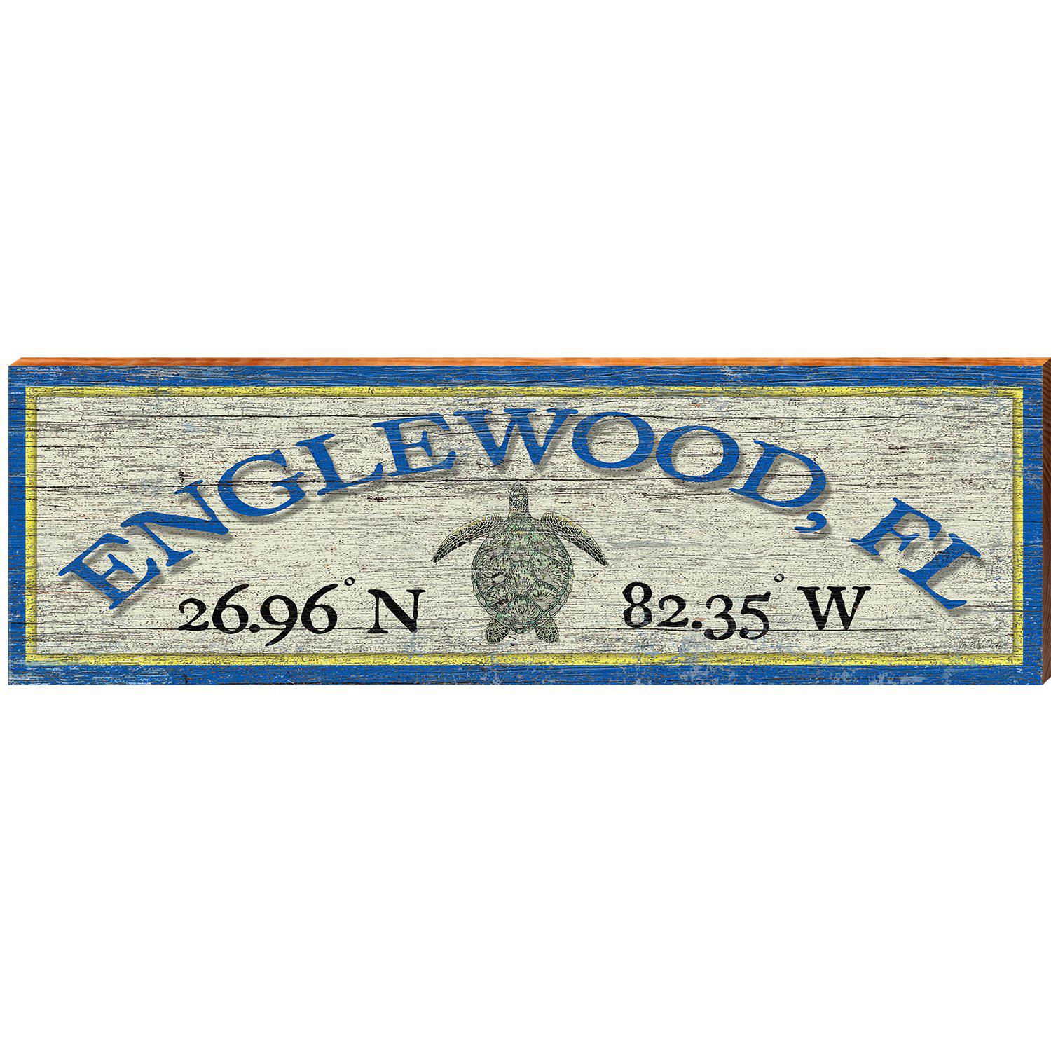 Englewood, Fl Sea Turtle White/Yellow Latitude Longitude