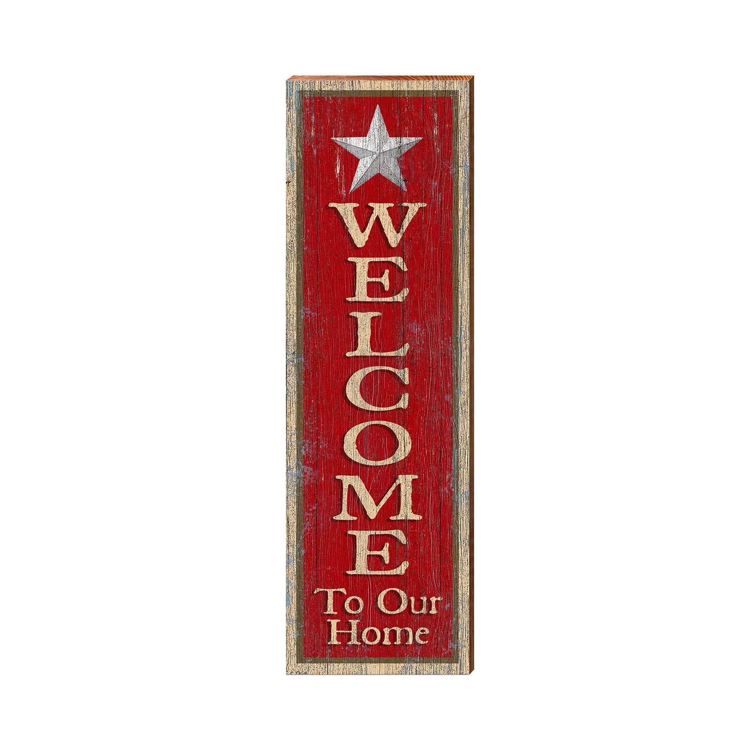 Welcome to Our Home Star Red | Wall Art Print on Real Wood