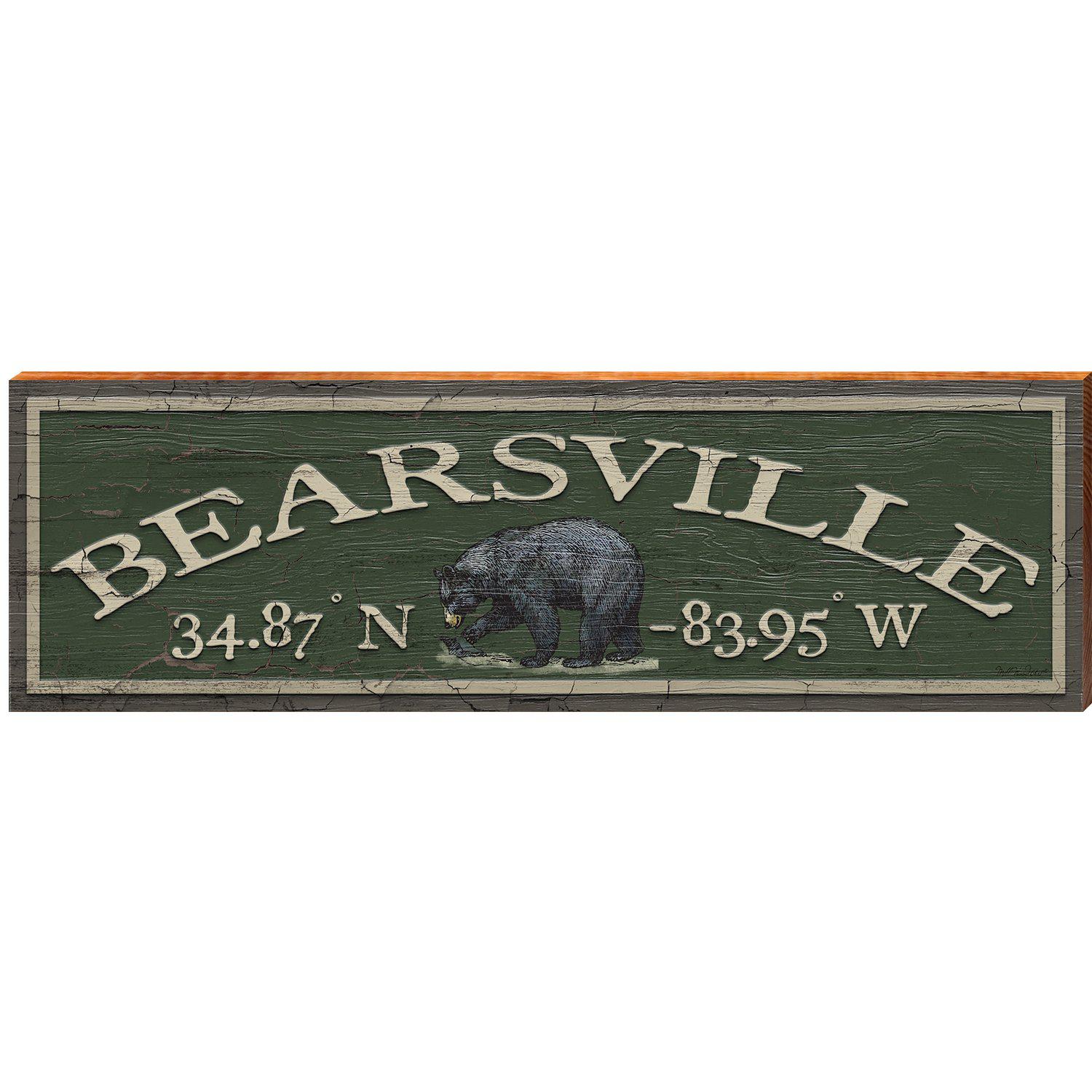 Bearsville Black Bear Green Latitude Longitude | Wall Art Print on Real Wood