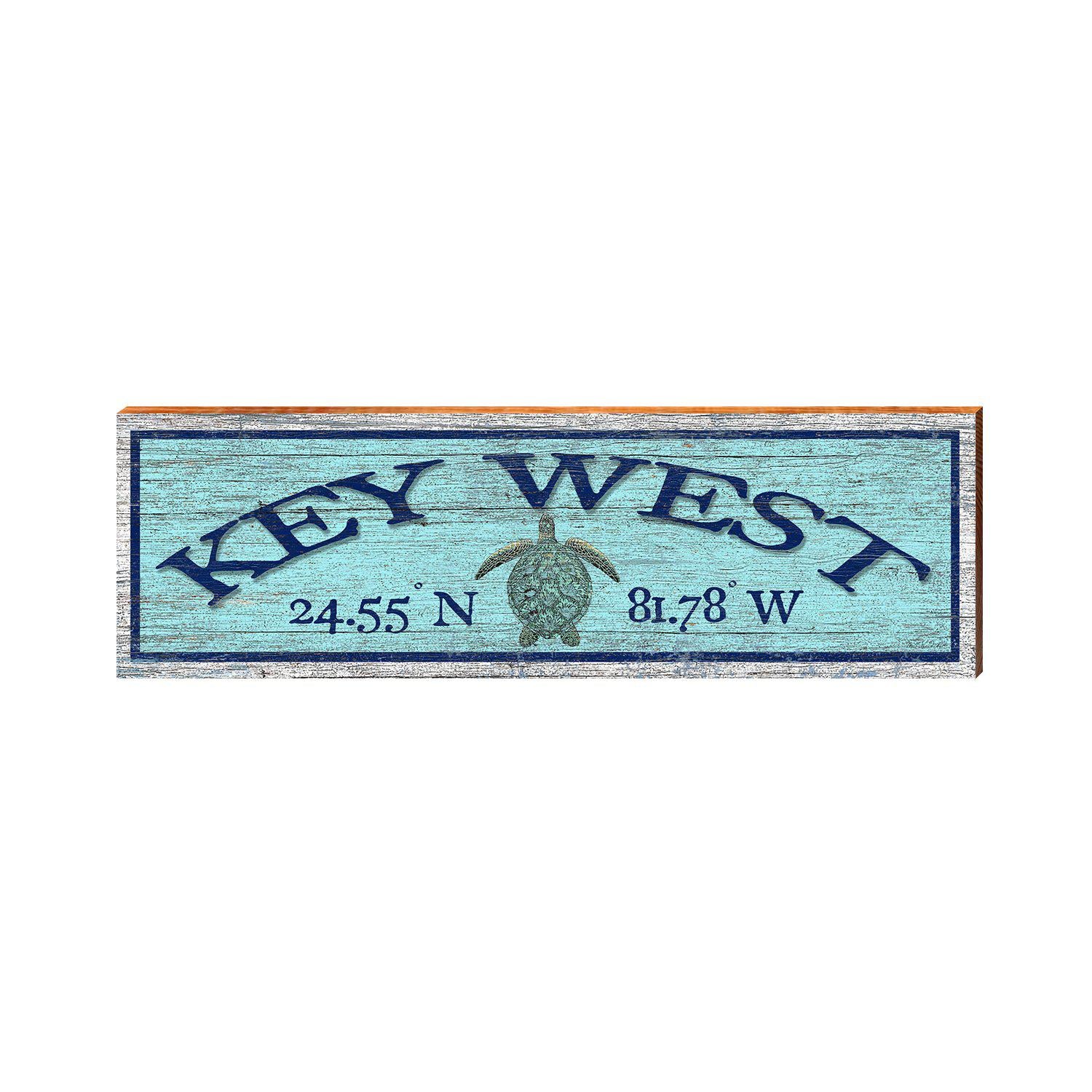 Key West Sea Turtle Blue Latitude Longitude | Wall Art Print on Real Wood