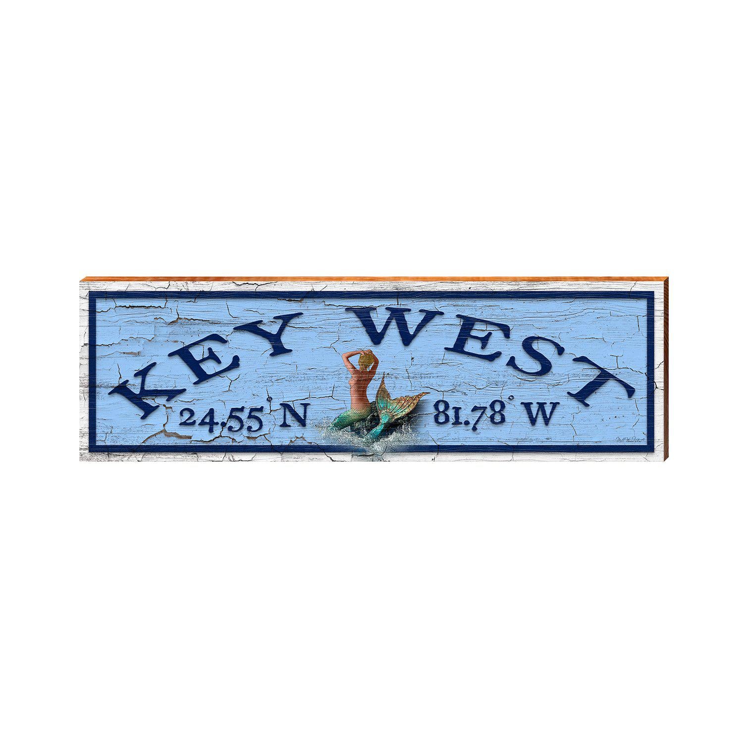 Key West Mermaid Blue Latitude Longitude | Wall Art Print on Real Wood