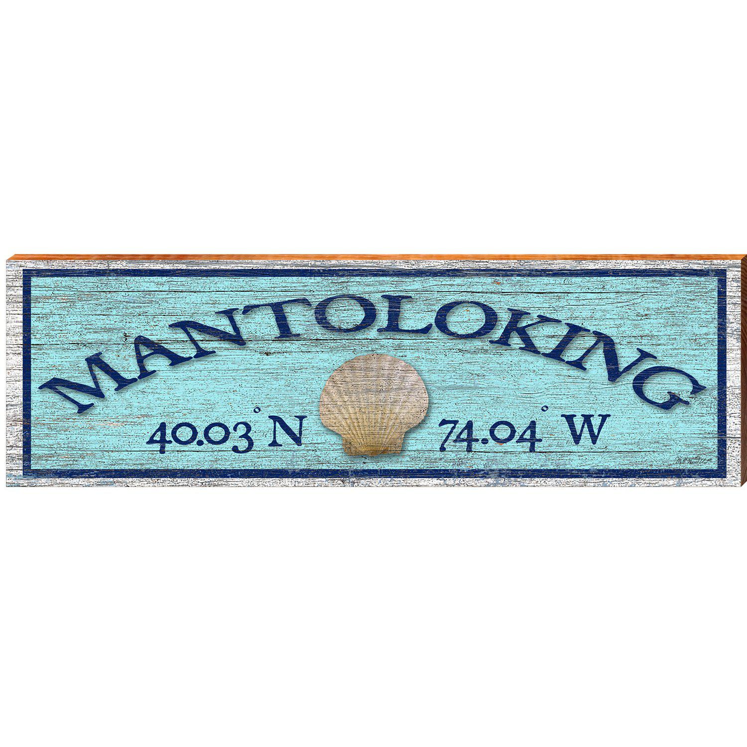 Mantoloking Shell Blue Latitude Longitude | Wall Art Print on Real Wood