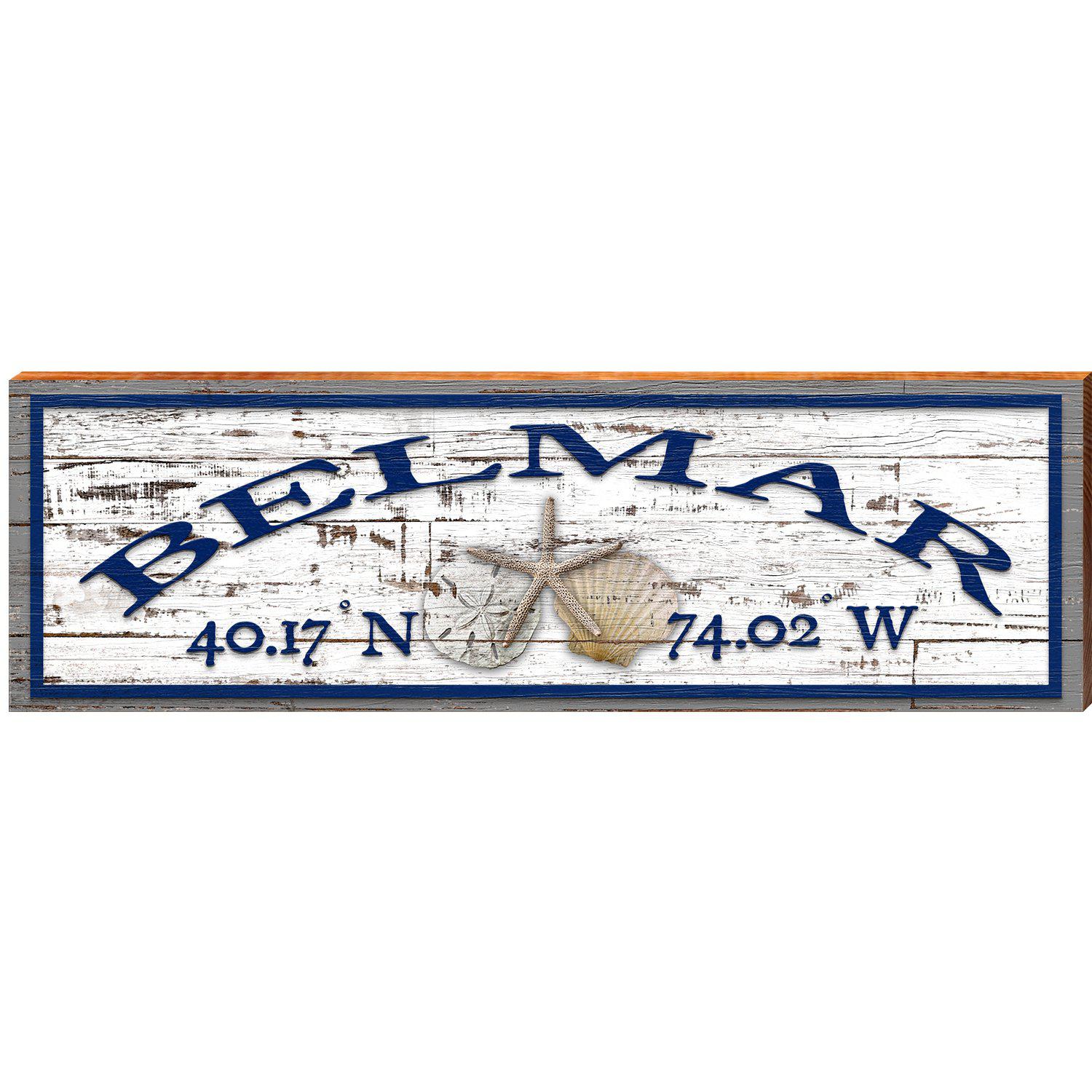 Belmar Triple Shells White Shabby Latitude Longitude | Wall Art Print on Real Wood