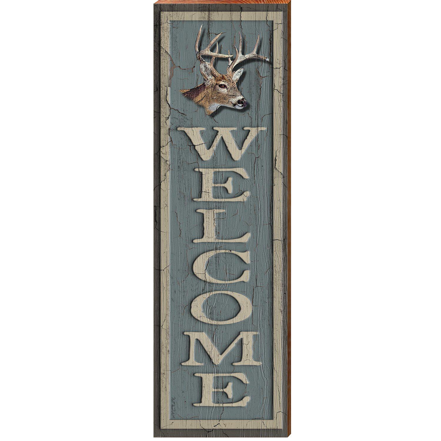 Welcome Buck Head Blue Sign | Wall Art Print on Real Wood