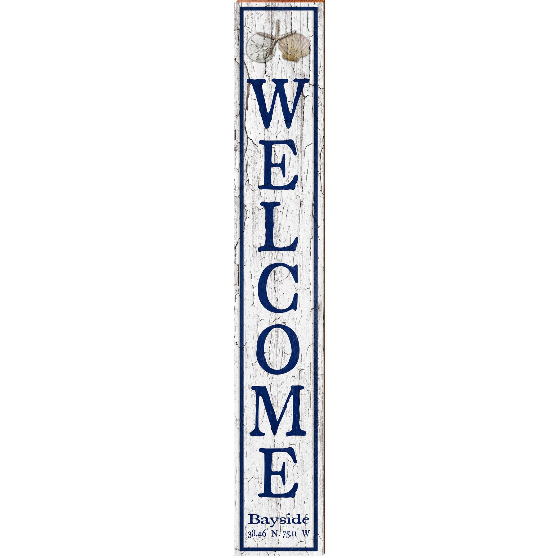 Welcome Bayside Triple Shells White Vertical Latitude Longitude SEA16