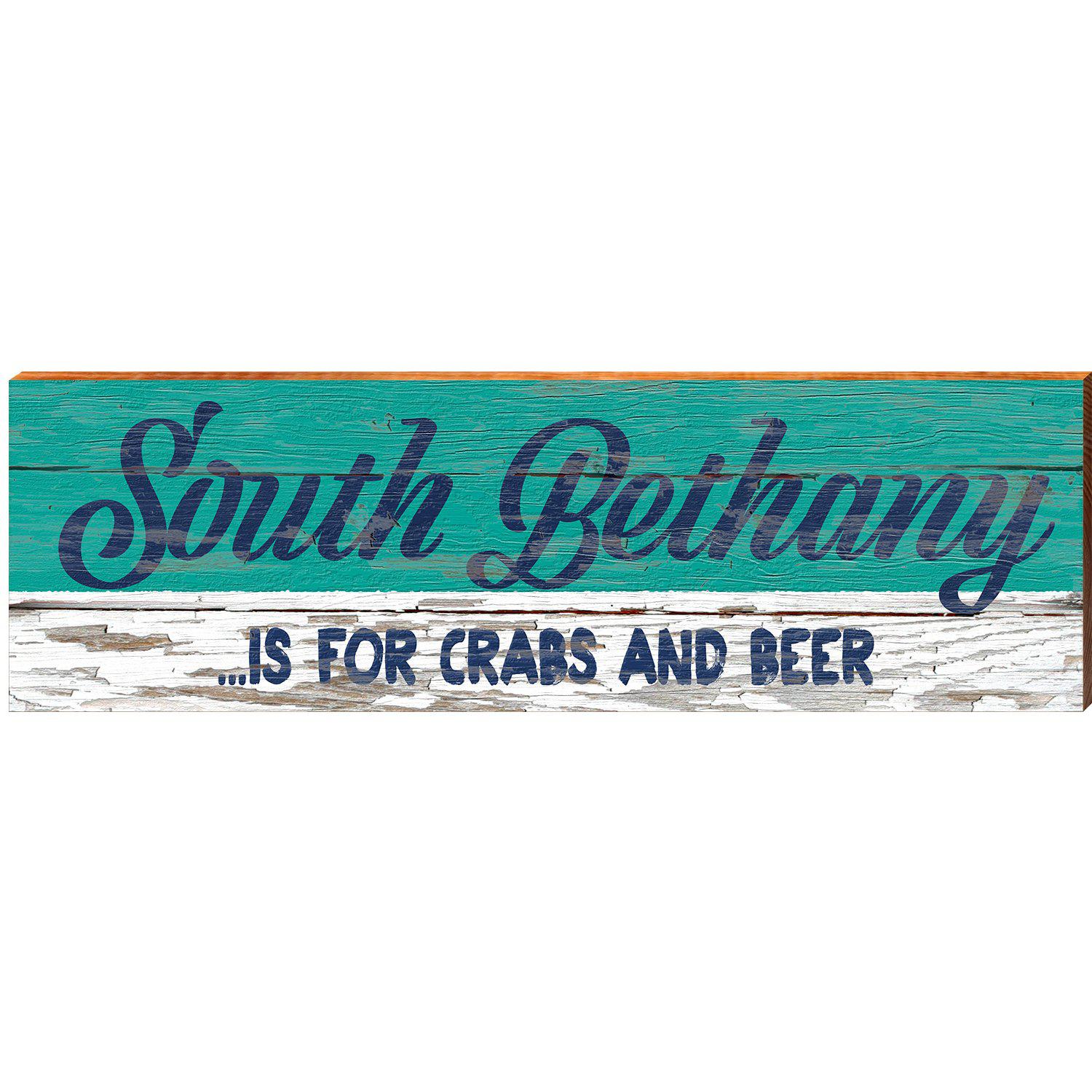 South Bethany is for Crabs and Beer Teal | Wall Art Print on Real Wood