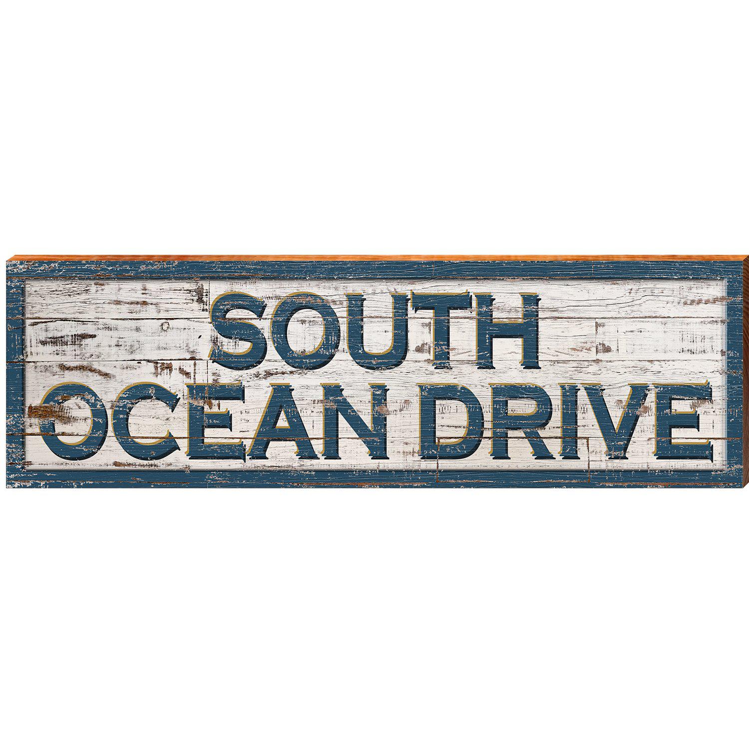 South Ocean Drive Shabby Sign | Wall Art Print on Real Wood