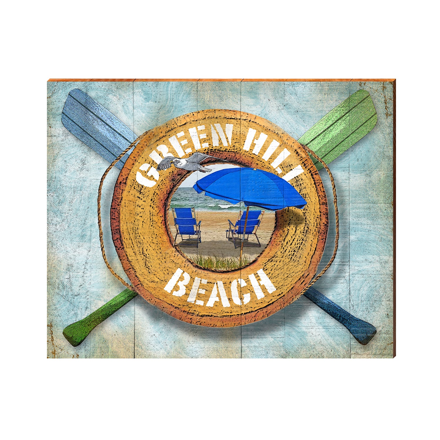 Green Hill Beach Blue Beach Umbrella Life Ring SIM3