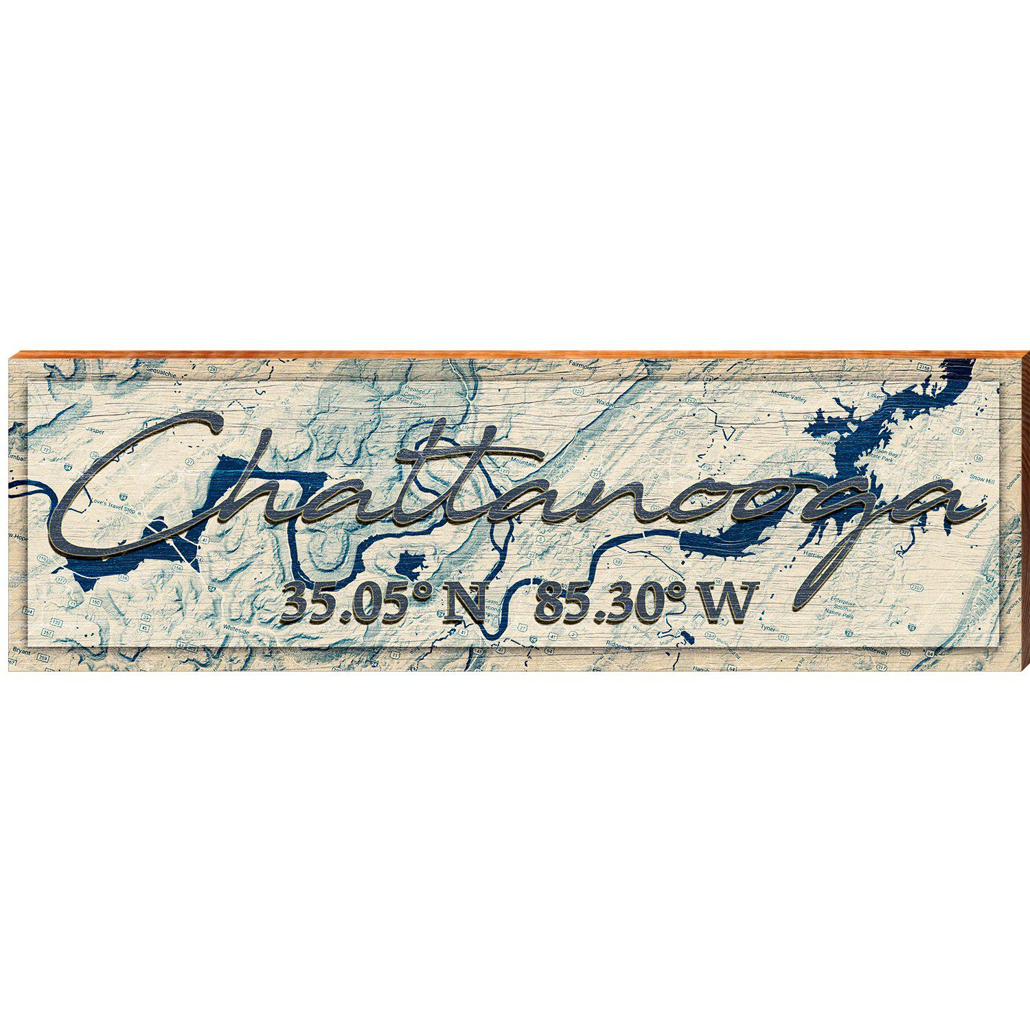 Chattanooga Map Latitude Longitude | Wall Art Print on Real Wood