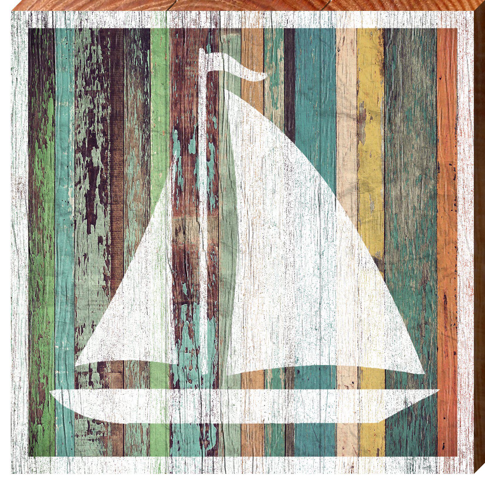 Sailboat Colorful Stripes | Wall Art Print on Real Wood
