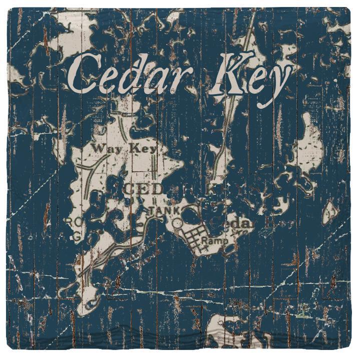 Cedar Key White & Navy Shabby Map Coaster Set CED4