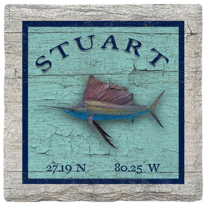 Stuart Sailfish Blue Latitude Longitude Coaster Set GAT1