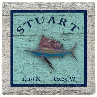 Stuart Sailfish Blue Latitude Longitude Coaster Set