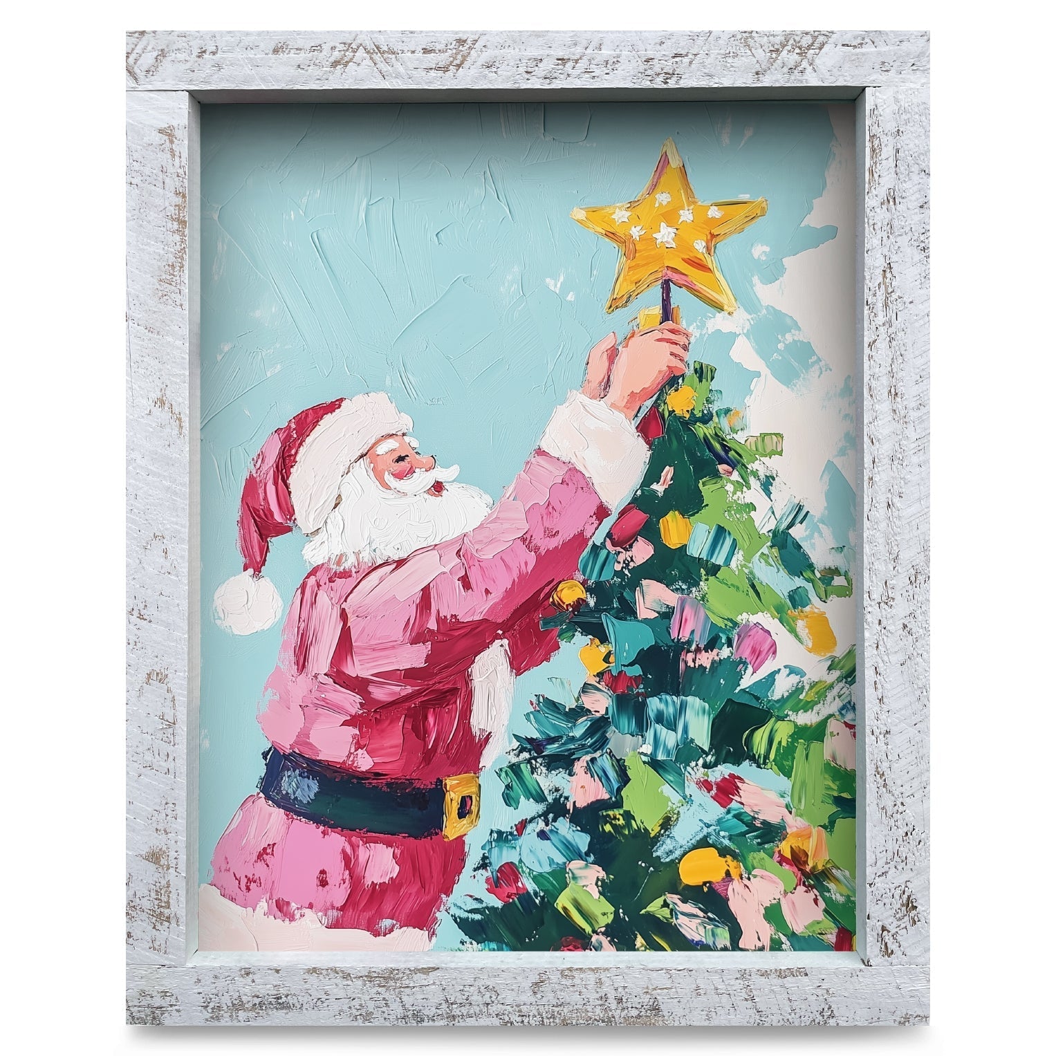 Santa Topping the Tree | Real Wood Framed Wall Art Print