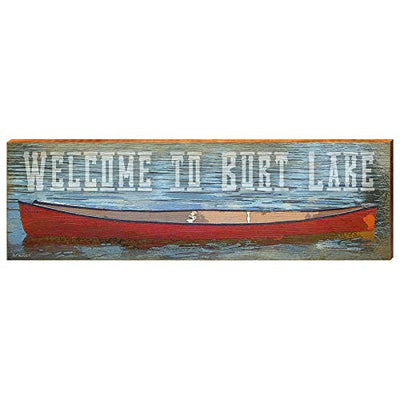 Details: This beautiful Welcome to Burt Lake Red Canoe design comes to life on this art piece made from 3/4" textured pine. The rustic wood canvas adds to the uniqueness of this piece. Brighten your living room, den or bedroom or hang it under a covered porch. USA made high quality construction.